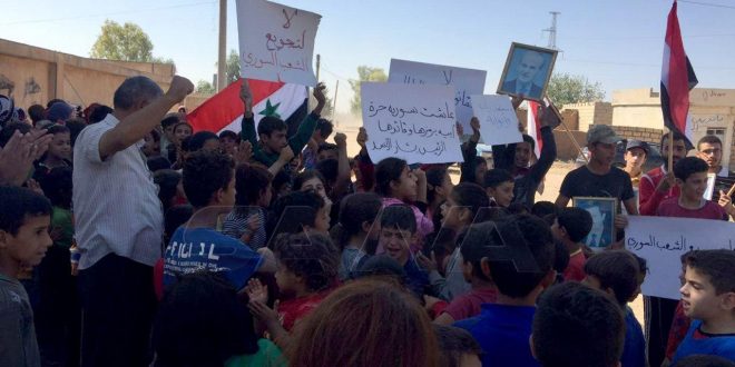 “Los manifestantes exigieron la salida inmediata de las tropas de Washington y Ankara de todo el territorio sirio”, según informó el corresponsal de SANA.