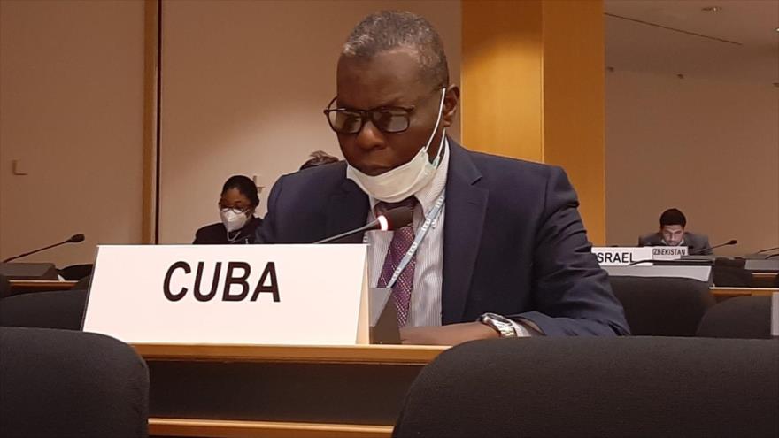 El representante cubano condenó las acciones agresivas, unilaterales e injustificadas del Gobierno de Estados Unidos, que dañan la solución biestatal y dañan a las naciones árabes e islámicas.