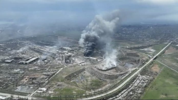 Se informa un incendio en las instalaciones subterráneas de la planta de Azovstal en Mariupol después de un ataque aéreo ruso, informó el sitio Top War como parte de la operación especial que continúa y que había llevado a la toma por parte de fuerzas rusas de una parte de la fábrica.