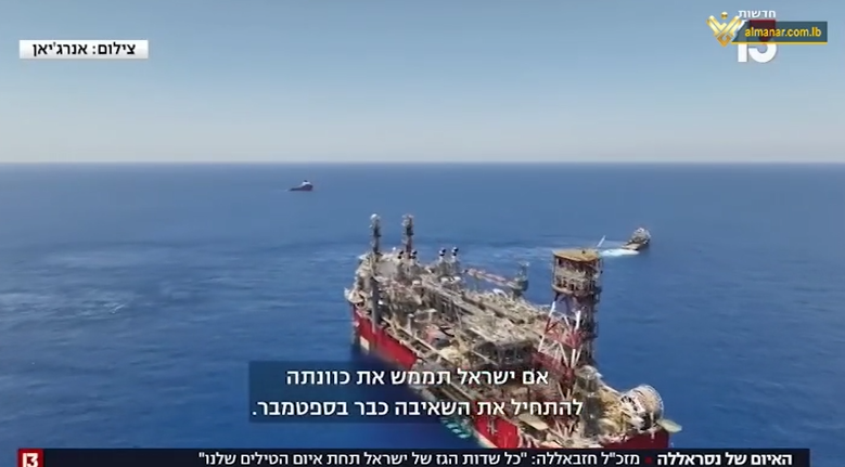 El Departamento de Medios Militares de Hezbolá publicó el domingo un vídeo que muestra las plataformas israelíes que operan en el Mediterráneo, advirtiendo al enemigo sionista contra sus intentos de saquear los campos de gas y petróleo del Líbano.